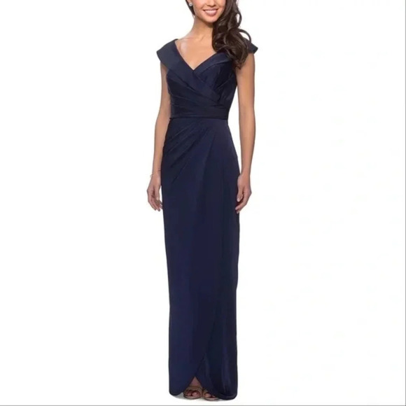 NEW La Femme Surplice Off the Shoulder Column Gown Size 12