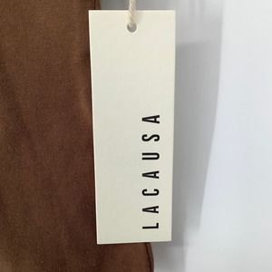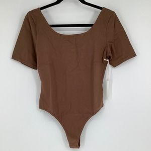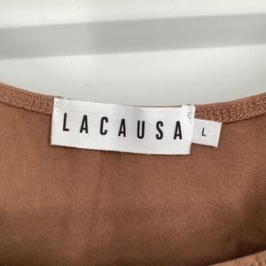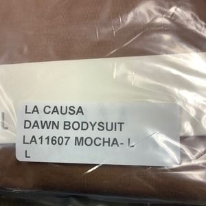 NEW! Lacausa Dawn Bodysuit Size Large Mocha Scoop Back Thong Soft Spandex H9-3