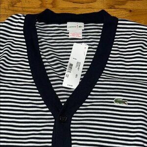 NEW 🆕 Lacoste Navy and White Striped Cardigan
