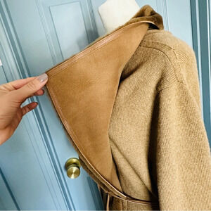 NEW Lafayette 148 NY Cammello Genuine Shearling Panel Wool and Cashmere Cardigan