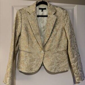 NEW WITH TAGS! Gorgeous, discontinued gold metallic blazer with a 3D jacquard fabric. Silk blend, metallic thread. Retail $569 - offers welcome.