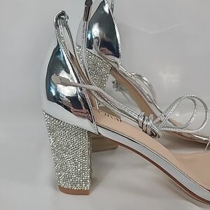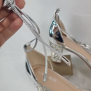 NEW Lala Ikai Rhinestone Ankel Strap Open Toe Silver High Heel Shoe Sz 10 NIB. Heel 3.5"