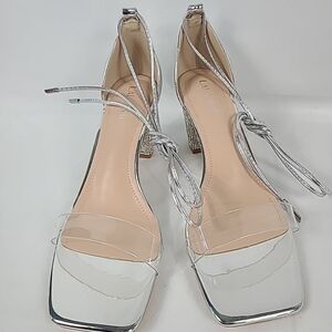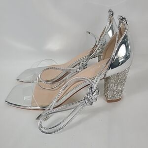 NEW Lala Ikai Rhinestone Ankel Strap Open Toe Silver High Heel Shoe Sz 10 NIB