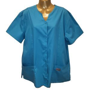 NEW Landau ScrubZone X-Large Teal Scrub Top Snap Front V-Neck Deep Pockets