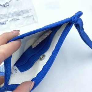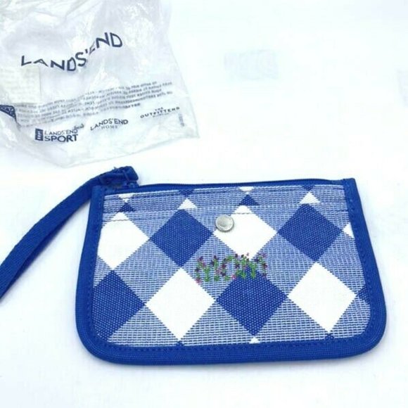 NEW Lands End Blue Embroidered Floral Mom White Plaid Gingham Canvas Wristlet