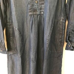 NEW Land's End Denim Midi Tunic Dress Size 8. New with tags NWT. Dark blue denim chambray look. Long sleeves that can be buttoned up. Half button front. High neck. Relaxed, loose-fitting.