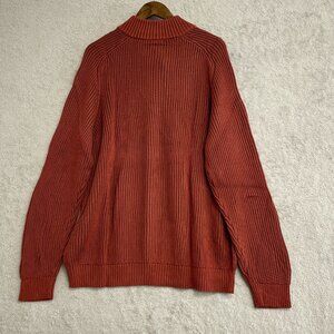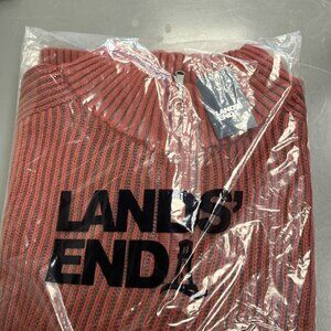 NEW Lands' End Drifter Men's XL Cotton Sweater Brick Red Ribbed Knit Quarter Zip