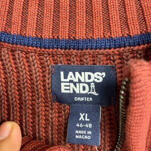 NEW Lands' End Drifter Men's XL Rust Red Cotton Sweater Ribbed Knit Pullover