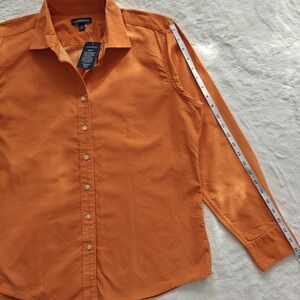 NEW Lands End Medium Orange Corduroy Button Up Collared Shirt 100% Cotton Top