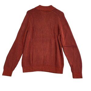 NEW Lands’ End Men’s L Ribbed Knit Sweater Mock neck Red Rust 100% Cotton i93