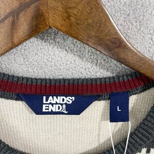 NEW Lands' End Men's L ream Fair Isle Bear Sweater 100% Cotton Crewneck
