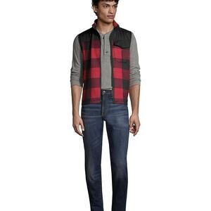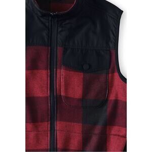 NEW Lands' End Men's Hybrid Sweater Fleece Vest — Red Buffalo Plaid
