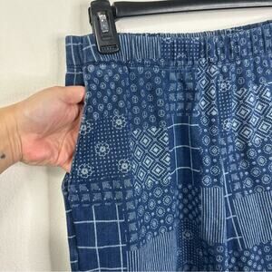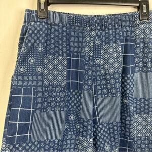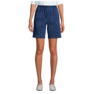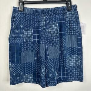 NEW Lands' End Size S High Rise Elastic Waist Pull On Shorts in Indigo Patchwork