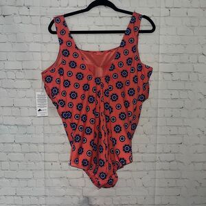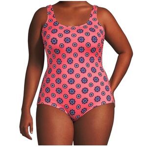 NEW Lands' End Women's Floral Print One Piece Swimsuit Coral Plus Size 22