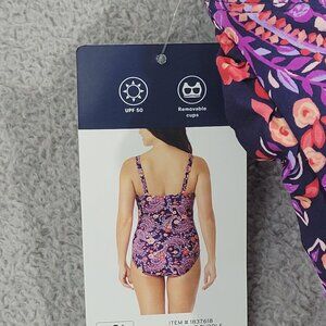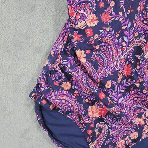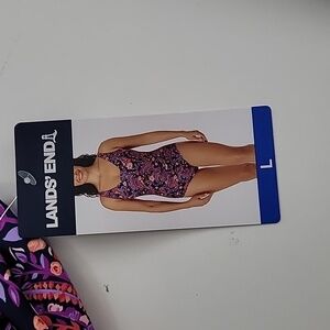 NEW Lands End Womens L One-Piece Swimsuit With Floral Paisley Print