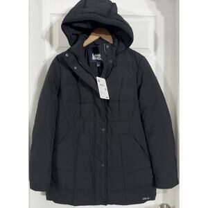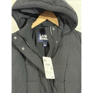 NEW Lands End Women's Quilted Down Hooded Black Coat 600 Fill Power 80/20 NWT S