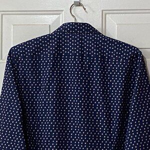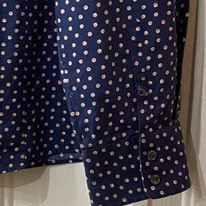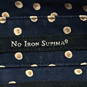 NEW Lands'End Supima No-Iron Sz 18 Blouse Shirt Long Sleeve Navy Polka Dot