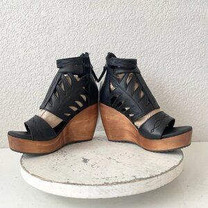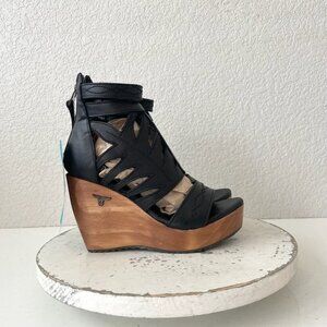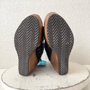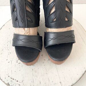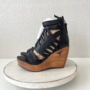 NEW Lane Boots BECCA Womens Black Wedges 5.5 Western Sandals Cowgirl Leather