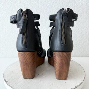 NEW Lane Boots BECCA Womens Black Wedges 8 Western Sandals Cowgirl Wooden Heel