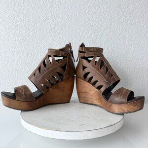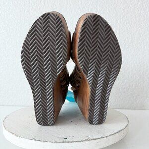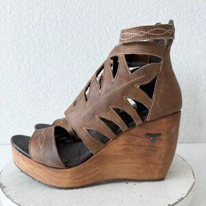 NEW Lane Boots BECCA Womens Brown Wedges 8 Western Sandals Cowgirl Wooden Heel