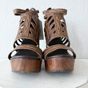 NEW Lane Boots BECCA Womens Brown Wedges 9 Western Sandals Cowgirl Wooden Heels