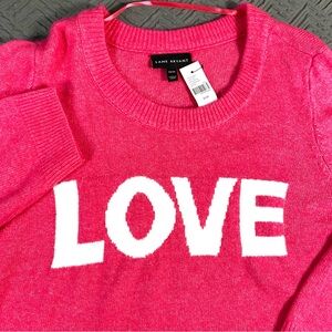 Beautiful LOVE sweater from Lane Bryant. Bright pink with white LOVE. Plus size 22/24. Polyester blend knit. Round neck. Long sleeves. Super cozy. New with tags!