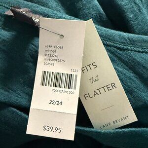 NEW Lane Bryant Teal Floral-Patterned V-Neck Tunic Top With Ruched Sides 22/24