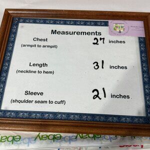 No visible flaws. Measurements: Chest = 27 inches, Length = 31 inches, Sleeve = 21 inches.