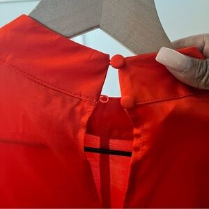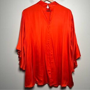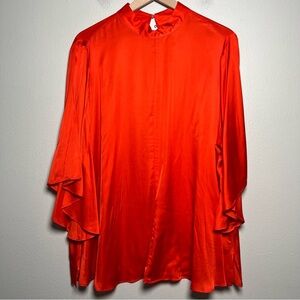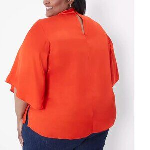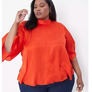 NEW Lane Bryant Women Blouse 18 Red Relaxed Flutter-Sleeve Mock-Neck Top Satin