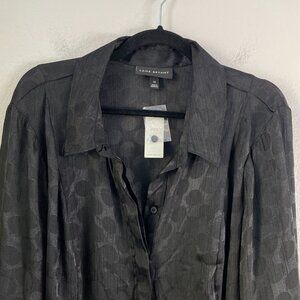 NEW Lane Bryant Womens Plus 22 Black Button Up Blouse Tunic Shirt Long Sleeve