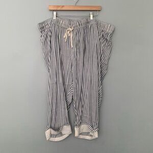 NEW Lane Bryant blue white striped pull on elastic waist drawstring crop pants