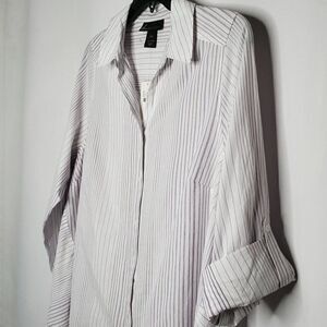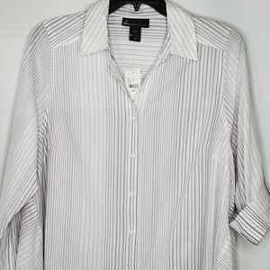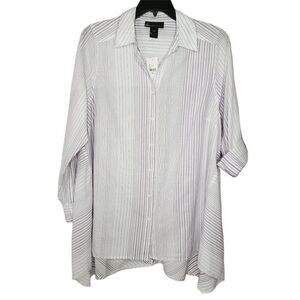 NEW Lane Bryant Button Down Shirt Sz 18 20 White Purple Stripe Long Sleeve