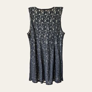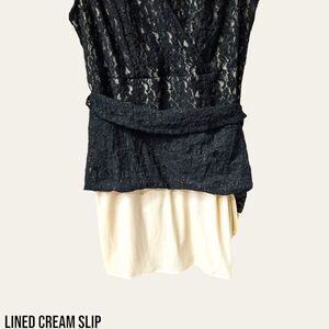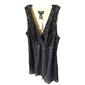 Women's New Plus Size Black Lace Overlay with tan Underlining Slip Midi Dress.