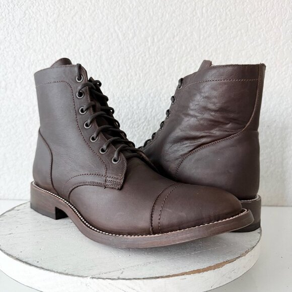 NEW Lane Mens Brown Ankle Boots Size 9.5 Lace-up Casual Genuine Leather Sole