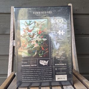 Brand new, unopened 1000 Piece Hummingbirds Artist Puzzle from Lantern Press. #82046. Stunning artist rendition of many types of hummingbirds. 100% recycled materials. Printed with eco-friendly inks. Perfect interlocking fit. No flaws.