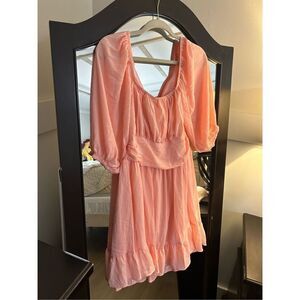 NEW Lantern Sleeve Tie Back Square Neck Off Shoulder Mini Dress M