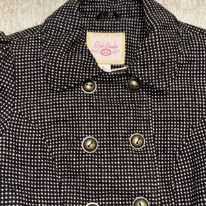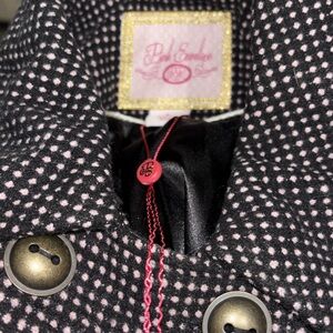 NEW Large Coat Black pink polka dots Bow back-lined Warm! Pink envelope junior
