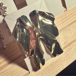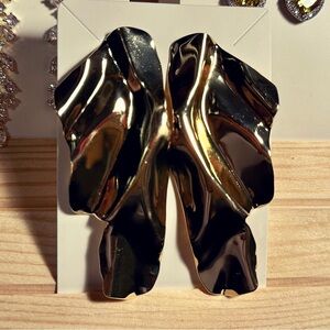 NEW Large Crumpled Goldtone Drop Earrings Designer Luxury Inspired