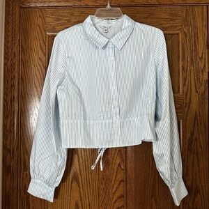NEW Large Guess Arctic Sky Combo Button-up Short Striped Blouse LS Monica