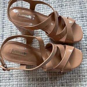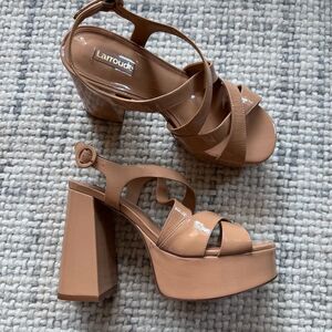 NEW Larroude Bee Sandal In Tan Patent Leather 9.5
