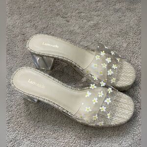 NEW Larroude Jenn Lucite Sandals, Size 9 Floral Heels