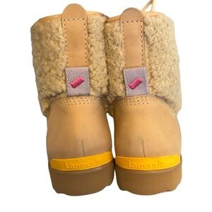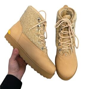 A stylish, street-ready take on hiking boots from Larroude, rendered in a mix of smooth nubuck and fluffy sherpa that's great for bringing a bit of coziness to your chilly-weather look.