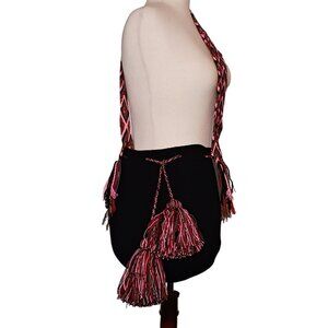 NEW Las Olas Large Columbian Wayuu MO Bag Black Multi 2.5" Wide Strap Boho Style