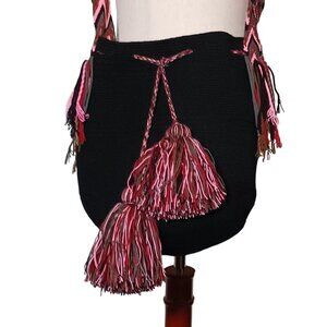 Keywords: Wayuu bag, boho bag, Las Olas, western bag, wide strap, tassel bag, Colombian style, handwoven bag, pink black bag, large boho bag, festival bag, artisan bag, crossbody bag, ethnic bag, shoulder bag, bohemian style purse, woven purse, bucket style bag, colorful purse