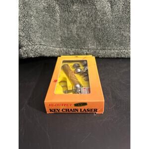 New in the box hi-output red laser light pointer. Includes 3 batteries and 5 various removable tip options, plus keychain attachment.