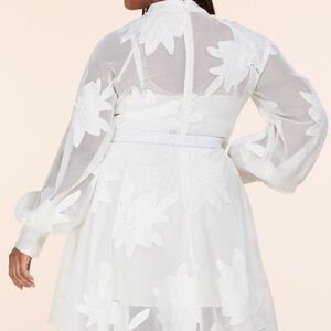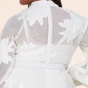 Sheer Mesh Cotton Blend Mini Dress features large embroidered flowers