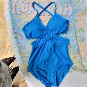NEW Laundry Grecian Blue Strappy Criss Cross Back Monokini One Piece Bathing Suit Swimsuit