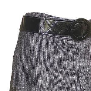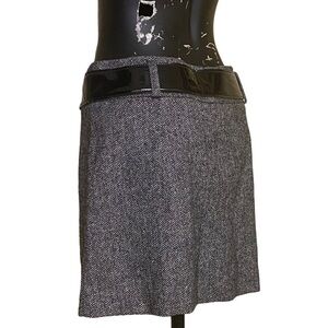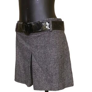 NEW Laundry by Shelli Segal Wool Tweed Front Pleat Mini Skirt in Black, back zipper closure, lined, black patent vinyl belt