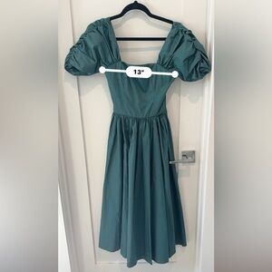 Stylish teal dress featuring elegant puff sleeves. Ideal for versatile wear.