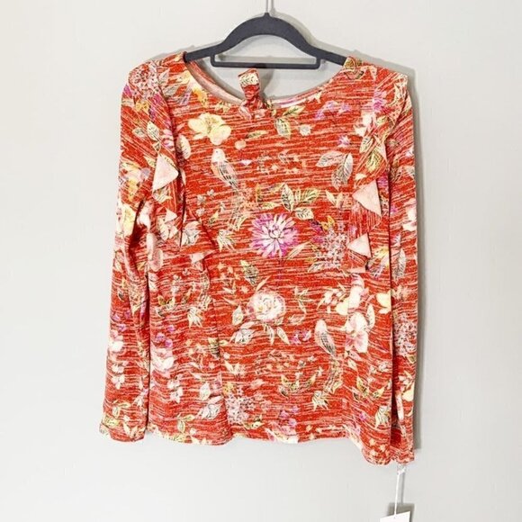 NEW Lauren Conrad orange floral long sleeve flowy casual top - Small